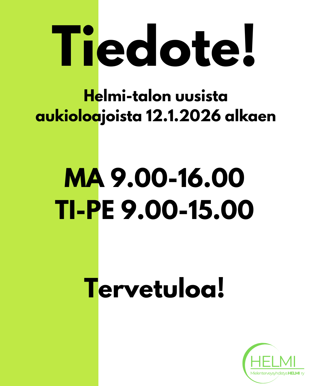 Helmin uudet aukioloajat 12.1.2026 alkaen