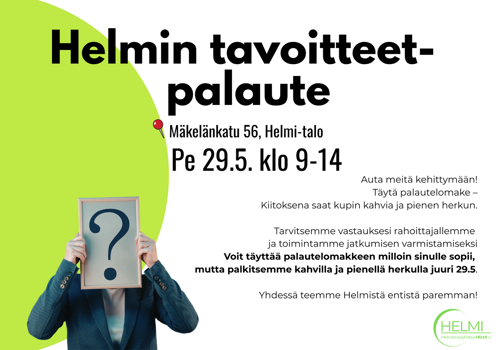 Voit täyttää palautelomakkeen milloin sinulle sopii, mutta palkitsemme kahvilla ja pienellä herkulla juuri 29.5.