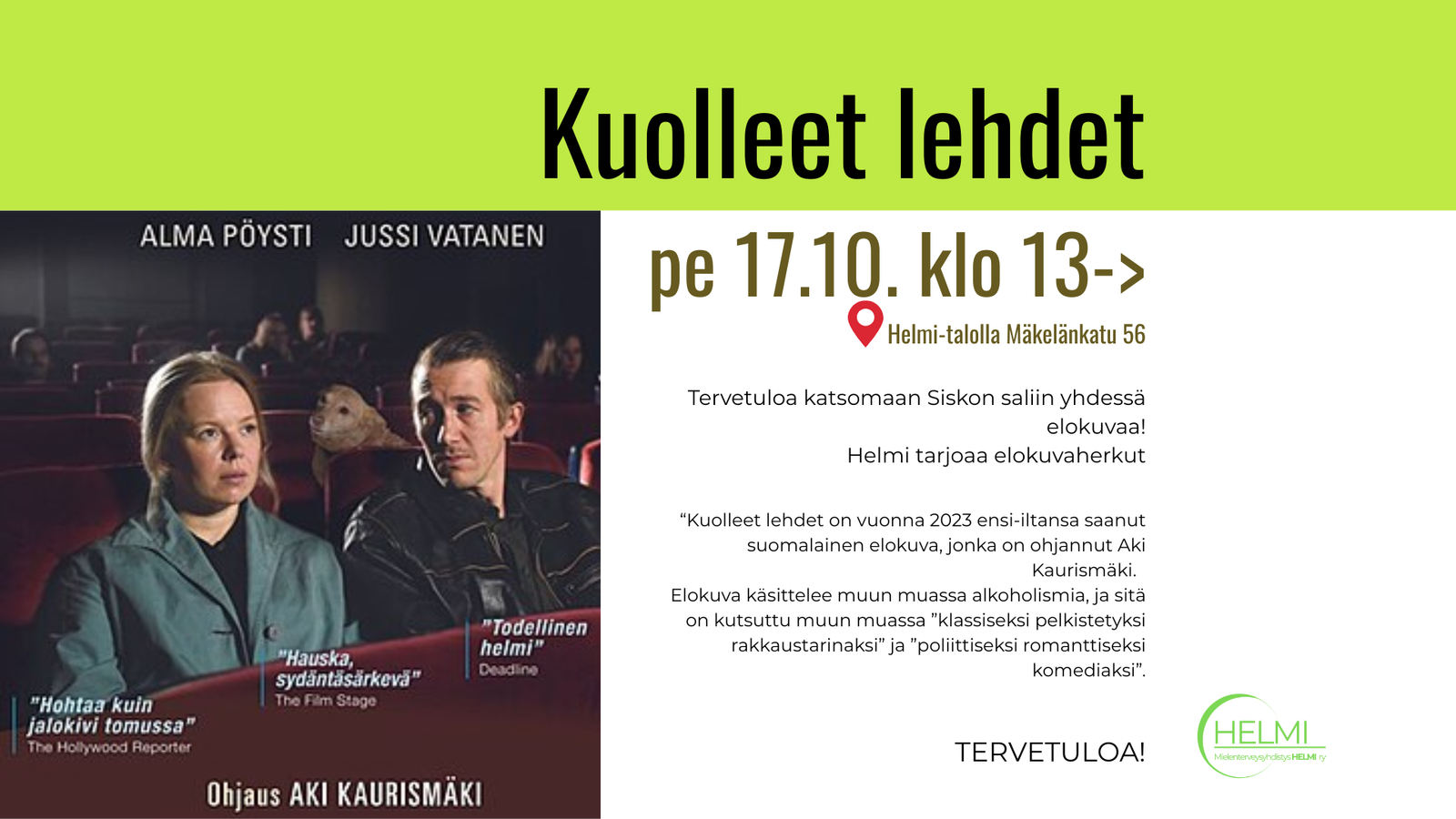 Tervetuloa katsomaan Siskon saliin yhdessä elokuvaa!