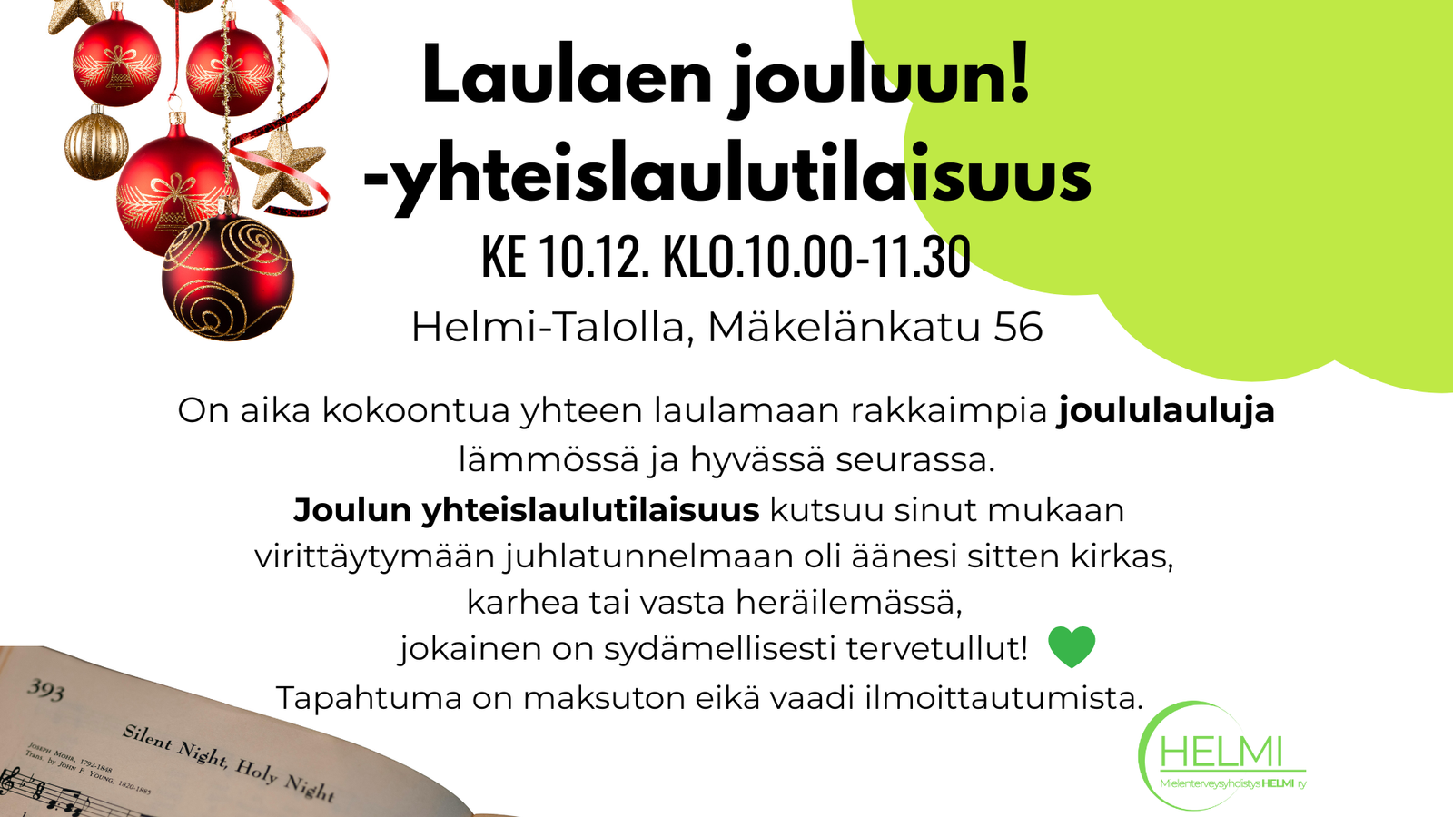 Joulun yhteislaulutilaisuus kutsuu sinut mukaan