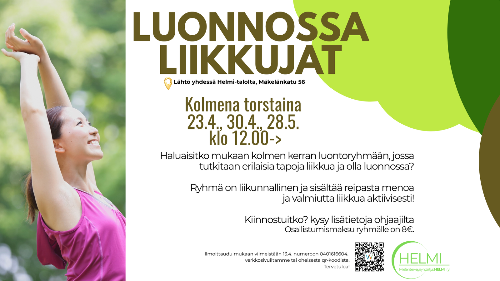 Haluaisitko mukaan kolmen kerran luontoryhmään, jossa tutkitaan erilaisia tapoja liikkua ja olla luonnossa?