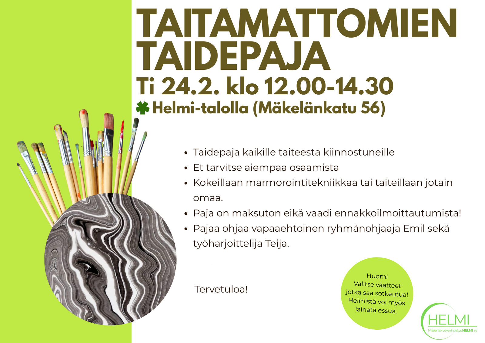 • Taidepaja kaikille taiteesta kiinnostuneille
