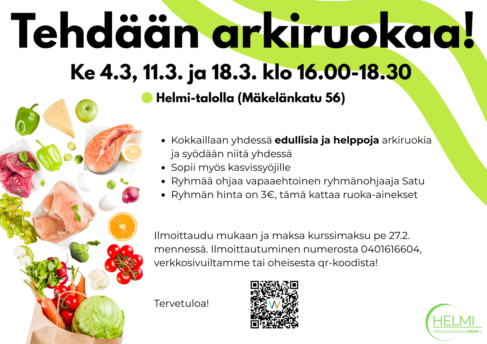 Ilmoittaudu mukaan ja maksa kurssimaksu pe 27.2. mennessä. Ilmoittautuminen numerosta 0401616604, verkkosivuiltamme tai oheisesta qr-koodista!
