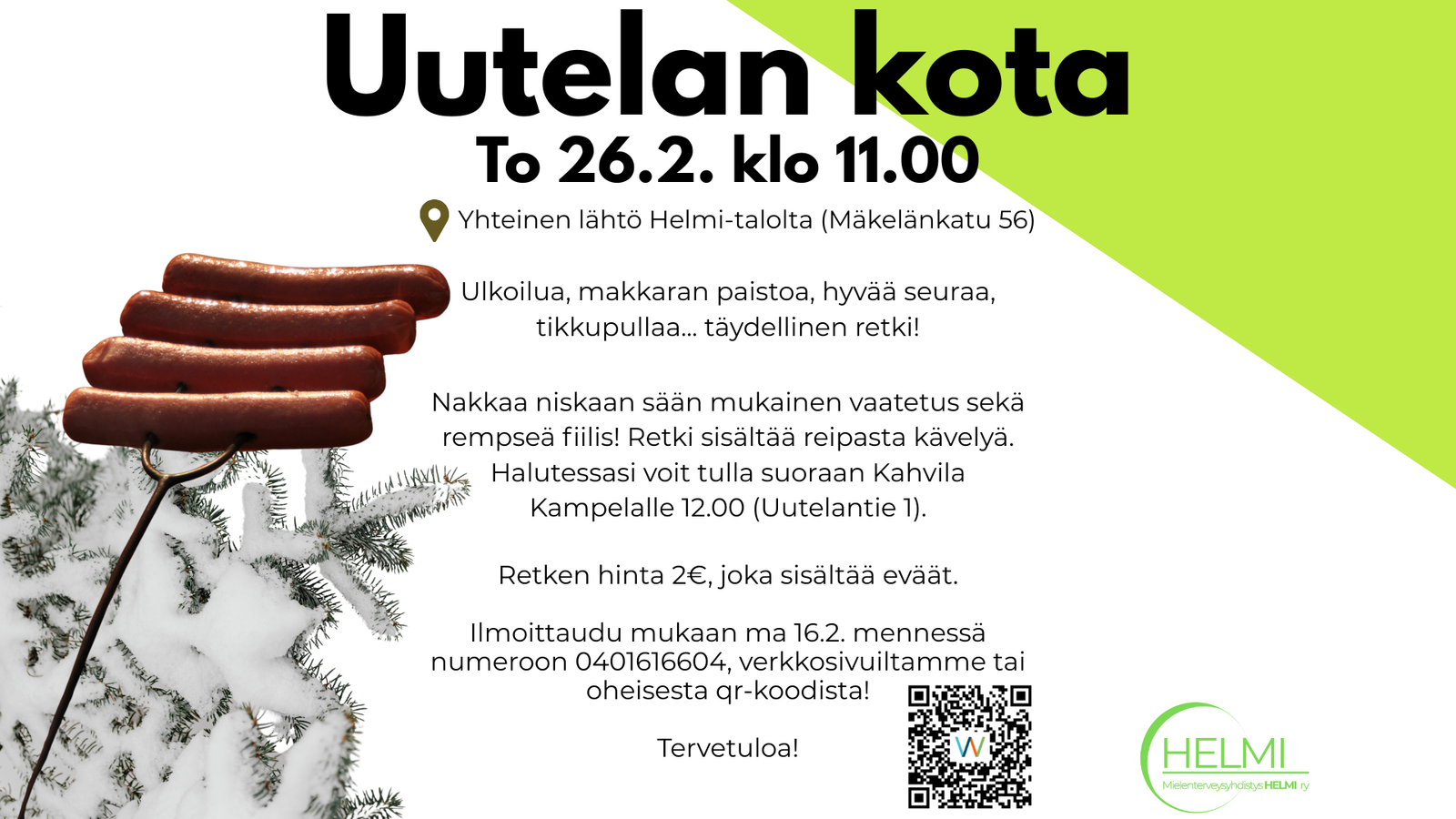 Ilmoittaudu mukaan ma 16.2. mennessä numeroon 0401616604, verkkosivuiltamme tai oheisesta qr-koodista!